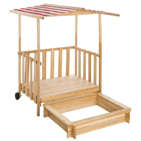 Este bonito arenero con caseta es perfecto para que los niños jueguen. Equipado con un tejado para que puedan jugar a la sombra. La caseta tiene ruedas y puede ponerse encima del arenero para protegerlo de la lluvia o de animales.