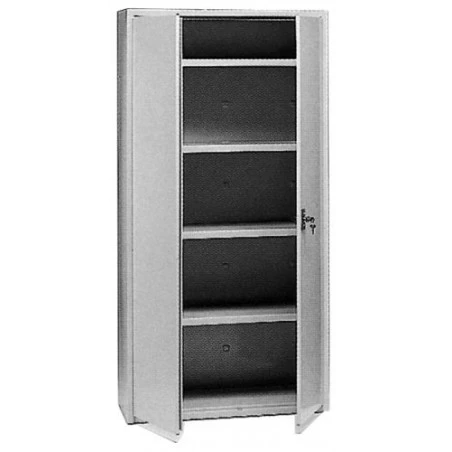 Las dimensiones del armario metálico de oficina son de 900x400x1.850 aprox y cuanta con un acabado en el armario de un tono gris perfecto para combinar con el mobiliario de tu oficina. Además, dispone de una cerradura de gran resistencia y calidad que le ofrecerá una mayor seguridad a la hora de guardar todo tipo de documentos confidenciales o cualquier tipo de información sensible. Por último, el armario metálico de oficina cerrado viene acompañado en su interior de un total de 4 baldas de gran capacidad y resistencia para proteger y almacenar todo tipo de objetos.