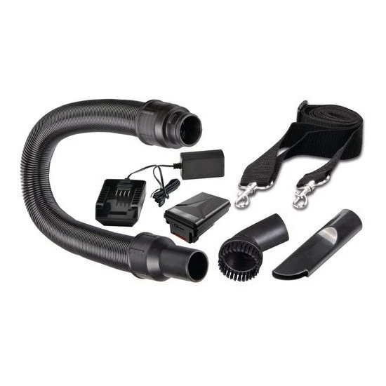 Incluye de serie: Batería 18 V 2 Ah, cargador 0,4 A, manguera de aspiración 0,5 m x Ø 32 mm, boquilla redonda con cepillo, boquilla para rincones, correa de transporte.