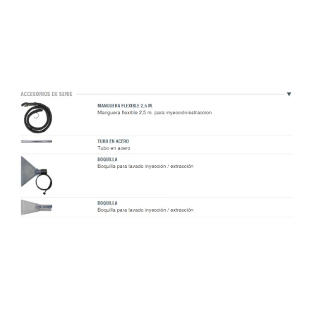 Es un estractor inyector que gracia a su completa gama de accesorios es indispensable para la limpieza de todas las superficies de tela.