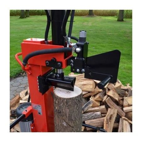Esta máquina es eléctrica y ejerce la presión con un motor de 400 vatios, la longitud máximo del tronco es de 100 cm y diámetro de corte es de 40 cm.
