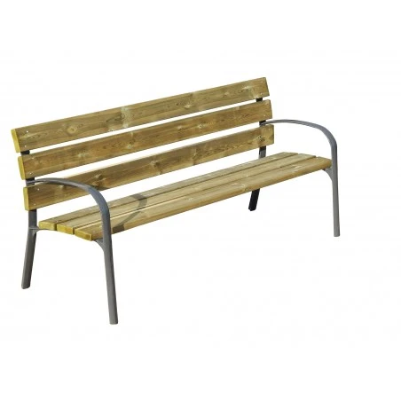 Banco para mobiliario urbano con mesas de madera de pino nórdico y estructura de hierro fundido.