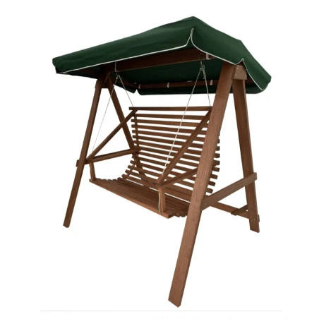 Lujoso banco mecedora de jardín con techo, fabricado en madera dura tropical de Meranti. Adecuado para áreas cubiertas de jardín e interiores. Puede utilizarse en exteriores con un tratamiento adecuado con aceite de Teca. La madera es un material natural. Las desviaciones de color de la imagen son una característica natural de la madera.