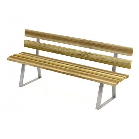 Banco para mobiliario urbano con mesas de madera de pino nórdico y estructura de acero galvanizado.