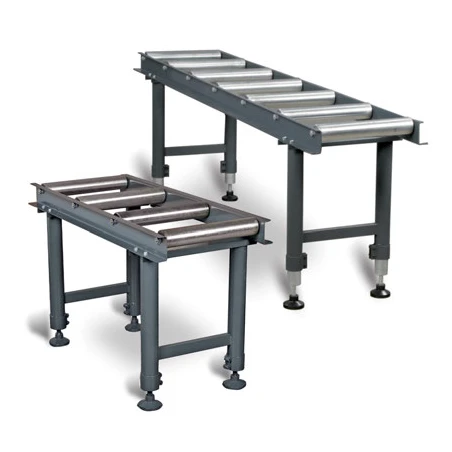 Banco para materiales ajustable en altura que sirve como accesorio de alimentación manual o como soporte para piezas largas para corte con sierra de metal.