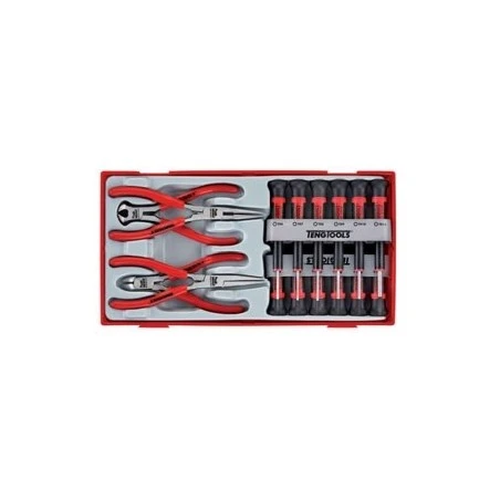 Juego de 12 mini destornilladores y 4 mini alicates.