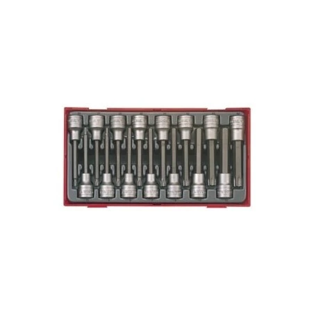 Juego de 15 vasos 1/2” con puntas largas de 100 mm.