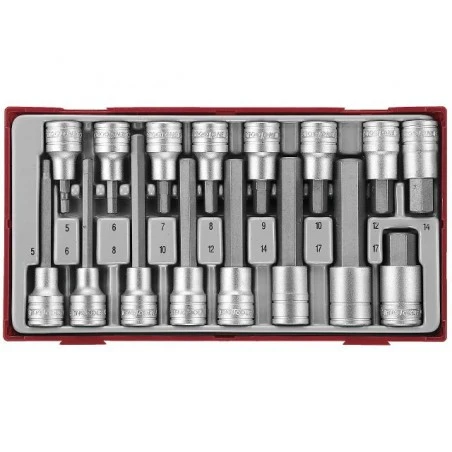 Juego que contiene 16 vasos de 1/2” para cabezas internas