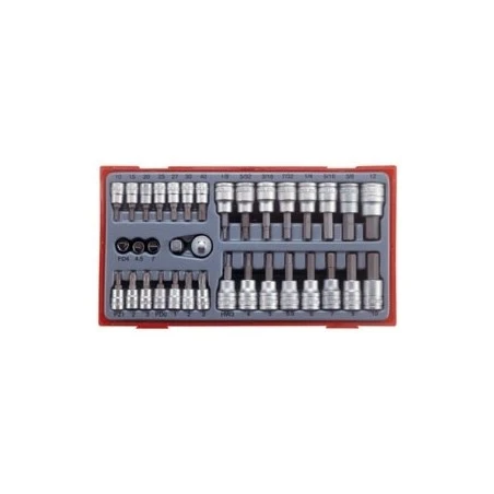 Bandeja muy completa de juego de vasos 1/4” y 3/8” con punta de 35 piezas, adaptador