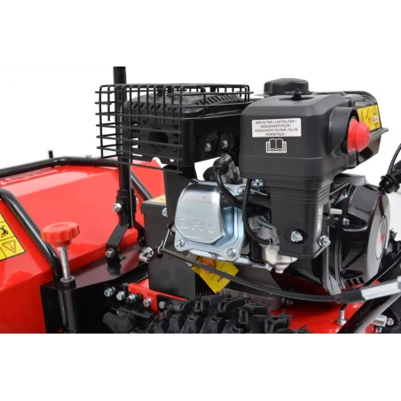 La barredora quitanieves está equipada con un motor de 4 tiempos de 196 cc., motor potente y de calidad. Dispone de 4 marchas hacia adelante y 2 marcha atrás. Su peso es de 72 Kg. Sus ruedas neumáticas confieren una mayor tracción en superficies con nieve, son de 13″.