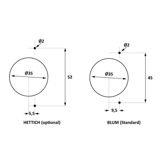 Incluye de serie el cabezal para bisagras tipo BLUM