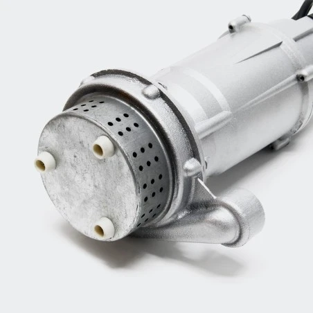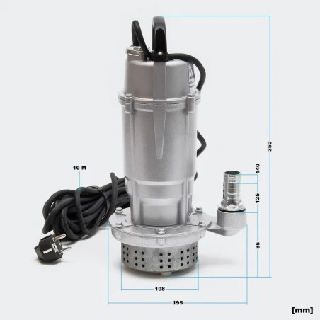 Con un rendimiento de 370 vatios, la bomba puede extraer hasta 1500 litros por hora, con un cabezal de descarga de 16 metros y una longitud de manguera de 20 metros.