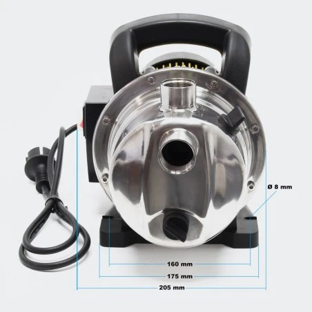 La bomba de jardín autocebante es adecuada para agua dulce, clara y de pozo. Gracias al potente motor de 1200 vatios, el caudal es de hasta 3.800 litros por hora. La altura máxima de succión es de 8 metros y la altura máxima de descarga es de 48 metros, lo que permite que esta bomba realice varias tareas, tales como para regar el jardín, para drenar piscinas y pozos o como abastecimiento de agua doméstico.