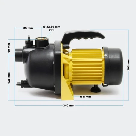 La bomba de jardín autocebante es adecuada para agua dulce, clara y de pozo. Gracias al potente motor de 600 vatios, el caudal es de hasta 2.800 litros por hora. La altura máxima de succión es de 7 metros y la altura máxima de descarga es de 35 metros, lo que permite que esta bomba realice varias tareas, tales como para regar el jardín, para drenar piscinas y pozos o como abastecimiento de agua doméstico.