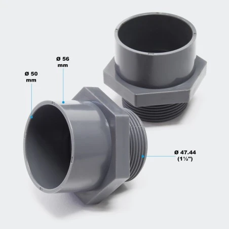 Conexiones Mangas adhesivas de PVC: 2 x Ø 56 mm