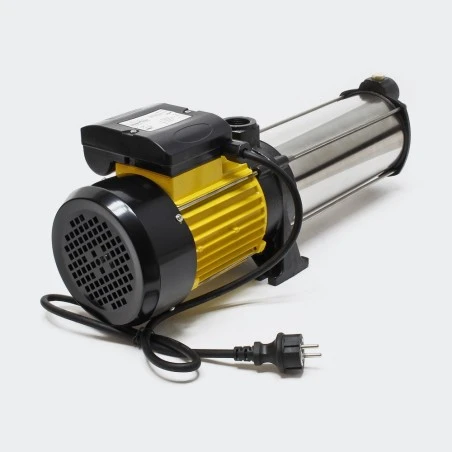 Con una potencia de 2200 vatios, puede bombear hasta 9.000 litros de agua limpia por hora. La bomba tiene un cabezal de entrega de 105 metros y un cabezal de succión de 9 metros.
