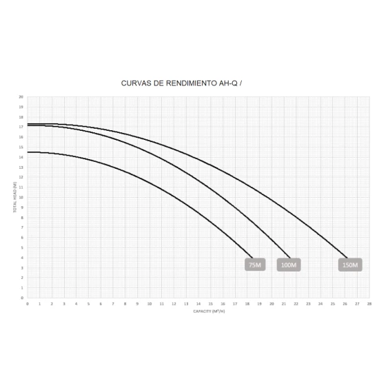 Gama de caudales desde 12,5 a 19,5 m3/h a 10 m.c.a.
