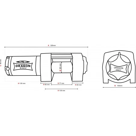 Las dimensiones del cabrestante (LxWxH) :320 mm x 100 mm x 100 mm
