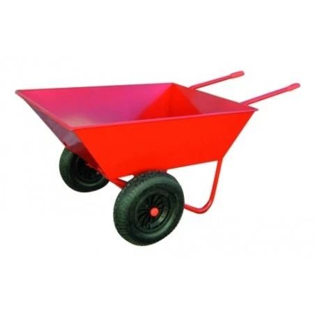 Carro con cuba de acero, muy cómodo. Por su geometría y tamaño permite transportar grandes cantidades de material. Sus dos ruedas aseguran una gran estabilidad.