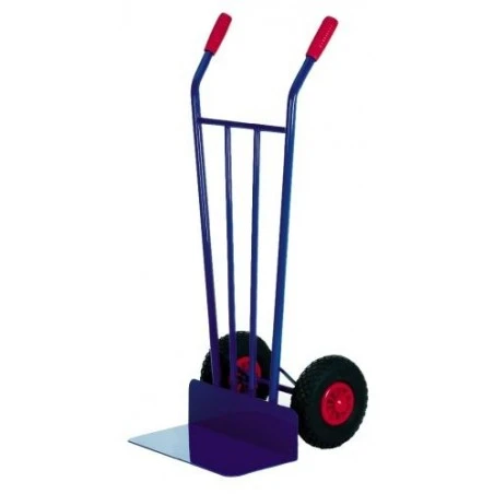 Carro para almacén, perfecto para el transporte de cargas, fabricado en tubo de acero muy resistente. Largo de la pala de 220. Ruedas neumáticas con llanta de plástico con cojinete liso. Capacidad de carga 200Kg.