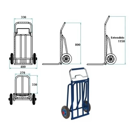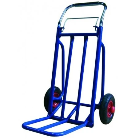 Carro plegable, pequeño y muy manejable. Fabricado en tubo de acero muy resistente. Ruedas neumáticas. Capacidad de carga 200Kg.