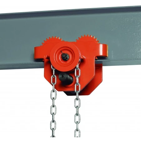 CARRO MANUAL CON CADENA PARA POLIPASTO con capacidad máxima de 5 T y cadena para el desplazamiento.