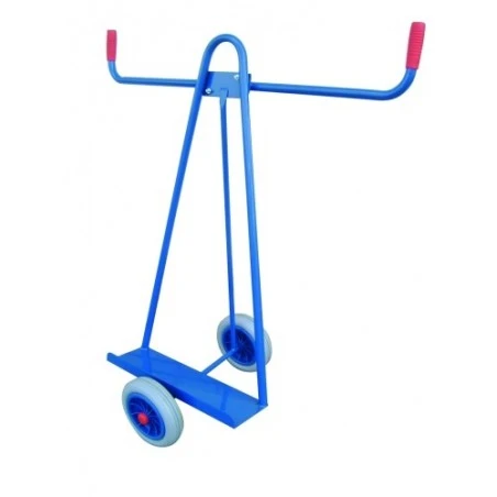 Carro para el transporte vertical de tableros. Construido con tubos de acero y con una base de 620x200x45 perfecta para el transporte de los tableros. Ruedas neumáticas.