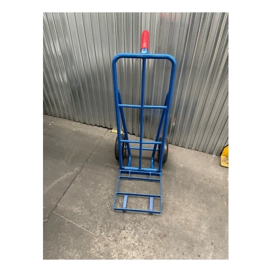 Carro de 1 mano con pala de pletina plegable, perfecto para utilizarlo en reparto. Fabricado en tubo de acero muy resistente. Ruedas neumáticas Ø 260 de 4 lonas y cojinete . Capacidad de carga 220Kg.