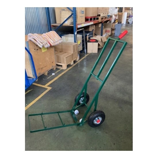 Carro de 1 mano con pala de pletina larga plegable, perfecto para utilizarlo en reparto de bebidas. Fabricado en tubo de acero muy resistente. Ruedas neumáticas de Ø 260 . Capacidad de carga 220Kg.