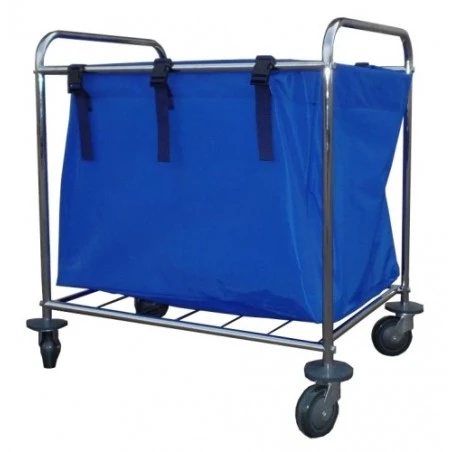 Carro para ropa sucia u otros artículos. Capacidad hasta 250 Kg. Cuatro ruedas de goma gris. Cuatro protectores para los golpes.