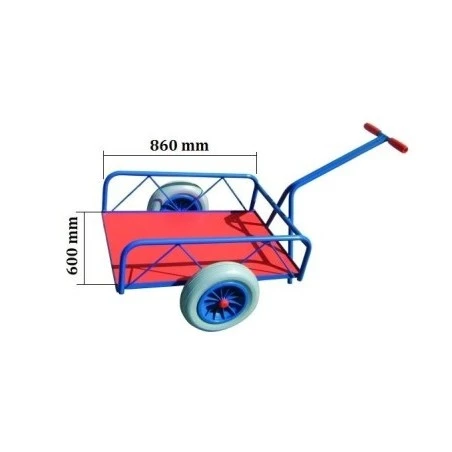 Carro pescatero o remolque de 1 eje, perfecto para el transporte de cargas voluminosas, fabricado en tubo de acero muy resistente con superficie de carga de fibra de madera. Ruedas Ø400 neumática. Capacidad de carga 300Kg. Base de madera plastificada.