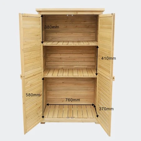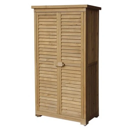 Caseta de jadín adeciada para guardar los juguetes de los peques o las herramientas de jardín. De madera y con tejado de alquitrán.