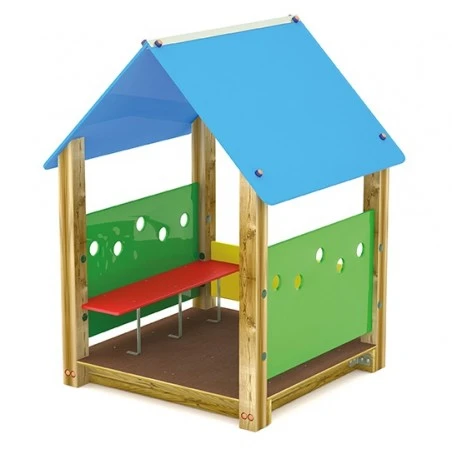 Casetta Magic que favorece la interacción y la socialización. En su sencillez, la casita se convierte en un lugar de encuentro para los más pequeños, que pueden reunirse y aprender a dialogar y estar juntos.