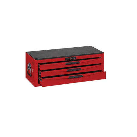 Cofre para guardar herramientas compuesto por 3 cajones con guías de rodamiento y cerradura de combinación.
