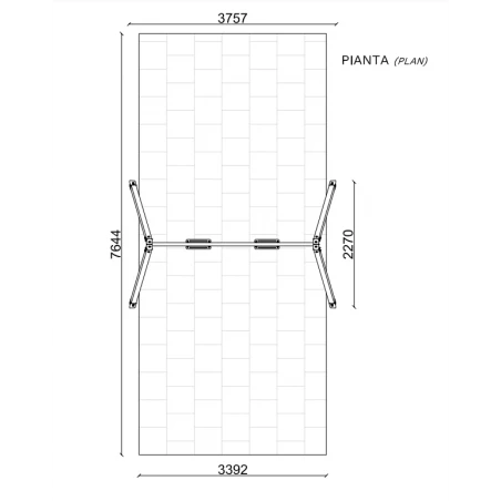 La estructura está realizada con postes laminares de pino nórdico de 90×90 mm, cuyas esquinas son redondeadas (r. 10 mm), mientras que el travesaño es de acero pintado en polvo (dm. 60 mm, esp. 3 mm, L. 3000 mm).