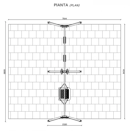 Columpio doble inclusivo con dos asientos, una tableta y una cesta, y trona de cuerda diseñada para fomentar la interacción entre niños de diferentes edades y niños con discapacidad. Estructura con postes de aluminio y travesaño de acero pintado en polvo. La trona de cuerda está equipada con un relativo cierre de seguridad.