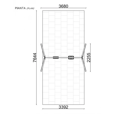 La estructura está realizada con postes metálicos de 70×70 mm (2 mm de espesor), mientras que el travesaño es de acero pintado en polvo (60 mm de diámetro, 3 mm de espesor, L. 3000 mm).
