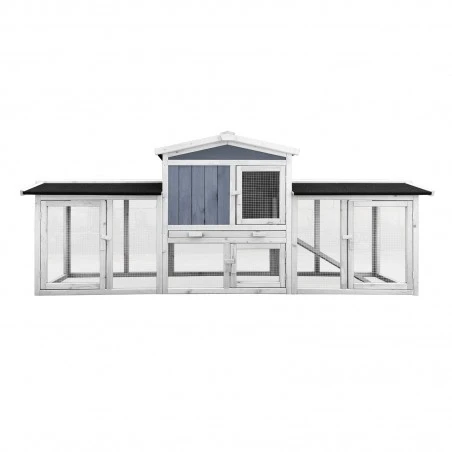 Para mantener conejos, liebres y conejillos de indias de acuerdo con su especie, se necesita mucho espacio para el ejercicio diario, además de un refugio seguro donde los animales estén protegidos de los depredadores y de las inclemencias del tiempo. Esta conejera hecha de madera de abeto tiene dos niveles y puede complementar el mantenimiento de animales pequeños además de un gran recinto al aire libre. El nivel superior forma un establo, que se eleva de tal manera que el recorrido libre se extiende por toda la superficie del suelo. Los animales llegan a la casilla por medio de una rampa equipada con travesaños para mayor estabilidad.