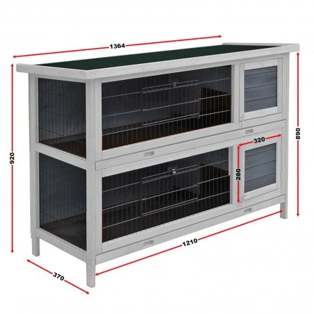 La conejera ofrece a sus seres queridos un hogar acogedor. Debido a sus pisos separados, también es adecuado para 2 animales que deben vivir separados. Las puertas del establo se pueden abrir por separado.