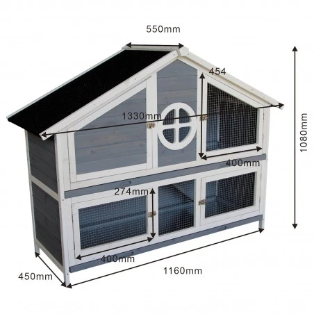 Hecho de madera de abeto recubierto de pintura y equipado con un techo cubierto de fieltro, esta casa de conejos es resistente a la intemperie y, por lo tanto, capaz de proteger eficazmente a sus queridas mascotas del viento, la lluvia y la nieve.