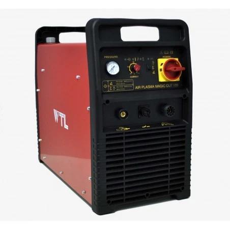 Cortador de plasma con una potencia entre 10 y 100 amperios (Es necesario un compresor de aire con 3-4 bar , 80-200l/min ). Por lo tanto, todos los metales conductores pueden ser cortados de 1 a 55 mm.