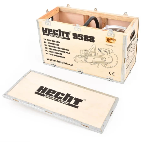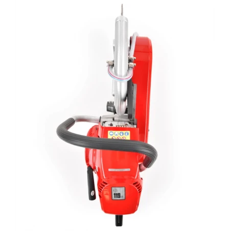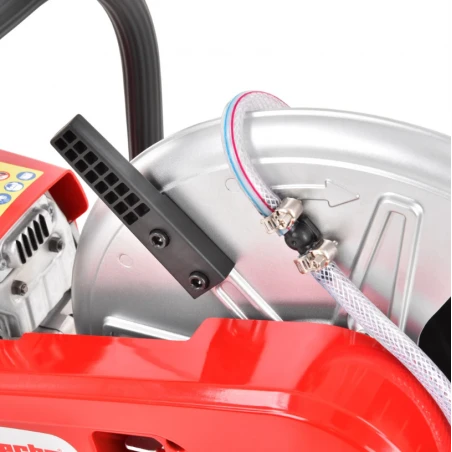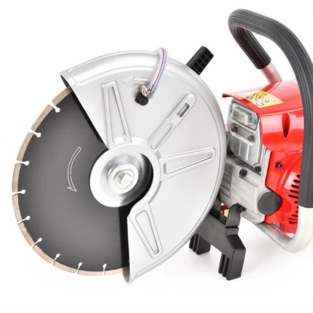 Tronzadora motorizada apta para cortar hormigón. Con caja de transporte. Mango antivibración.