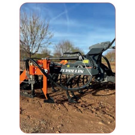 Estructura reforzada con extensión hidráulica de doble cilindro y brazo especiales que permiten una profundidad de labor de 25 cm.