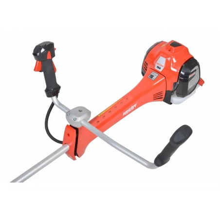 La máquina está equipada con un perfecto sistema antivibración, que amortigua la transmisión de vibraciones del motor y la herramienta de corte al mango y la correa. Esto reduce significativamente la fatiga y al mismo tiempo aumenta la comodidad en el trabajo. Las empuñaduras ergonómicas del tipo Bike se adaptan perfectamente a la mano y permiten un guiado preciso de la máquina en el campo.