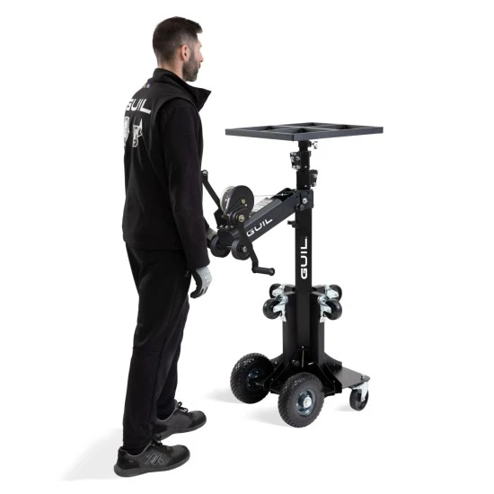 Su base compacta está equipada con 4 patas abatibles que incluyen ruedas con nivelador para un perfecto ajuste sobre cualquier tipo de superficie y 4 ruedas adicionales, dos de ellas antipinchazos para un cómodo transporte por terrenos irregulares. El elevador ELC-725/D, con bandeja de carga, es una herramienta perfecta para cualquier profesional que se dedique a la instalación y mantenimiento.