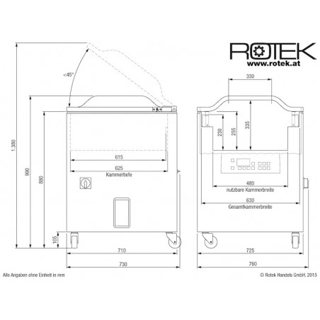 tamaño de la cámara útil 510 x 625 x 250/330 mm (ver dibujo)