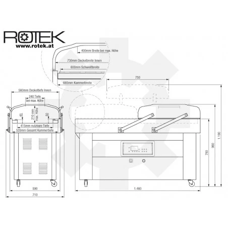 La bomba de vacío industrial utilizada tiene un excelente volumen de succión de 65 m³/h, lo que garantiza los tiempos de envasado más cortos.