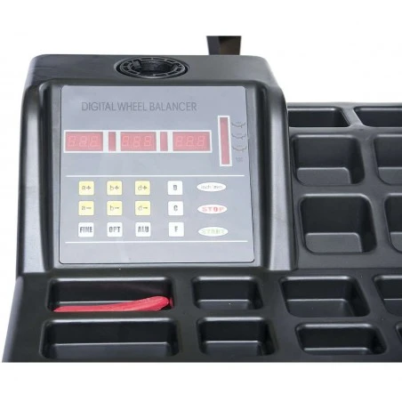 El dispositivo señalará el lugar del desequilibrio de la rueda por sí mismo, gracias al posicionador del lugar del desequilibrio en forma de freno electromecánico, una señal sonora y LEDs en la pantalla.