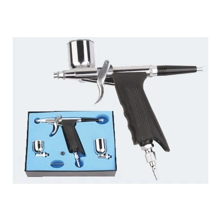Los acoples rápidos para el intercambio de las tres armas de fuego, un práctico soporte, mangueras, el adaptador adecuado, puntas de repuesto de 0,2 y 0,5 mm y el agua del filtro de aire, hacen de este conjunto un paquete completo.