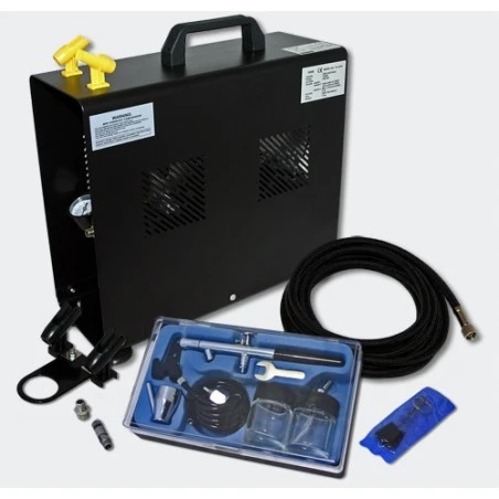 Este conjunto aerógrafo de alta calidad y el poderoso AS196A compresor de pistón sin aceite con tanque de presión proporciona todo lo que necesita para empezar.